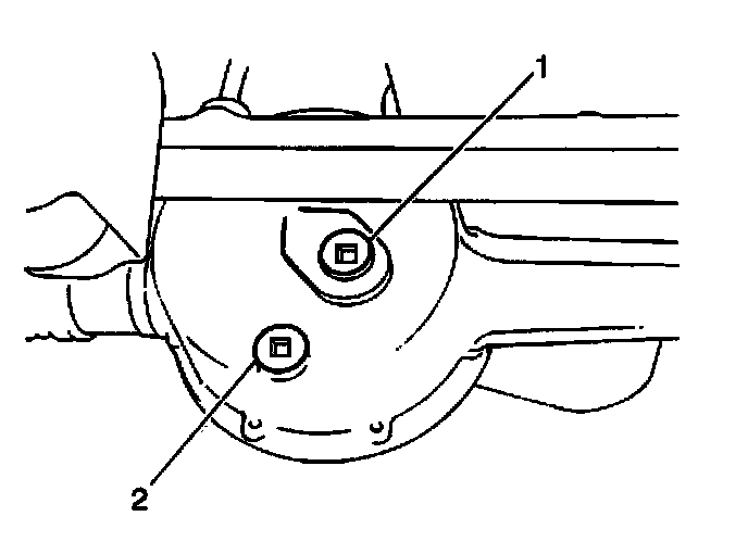 6. Install the front axle housing drain plug (2) into the front axle housing.