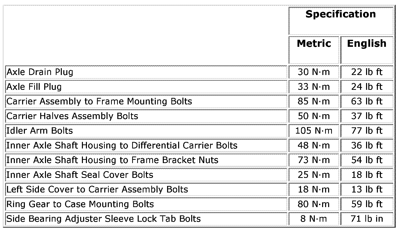 Fastener Tightening Specifications