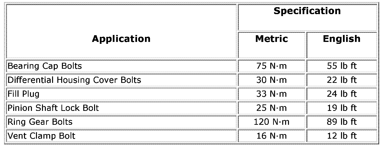 Fastener Tightening Specifications