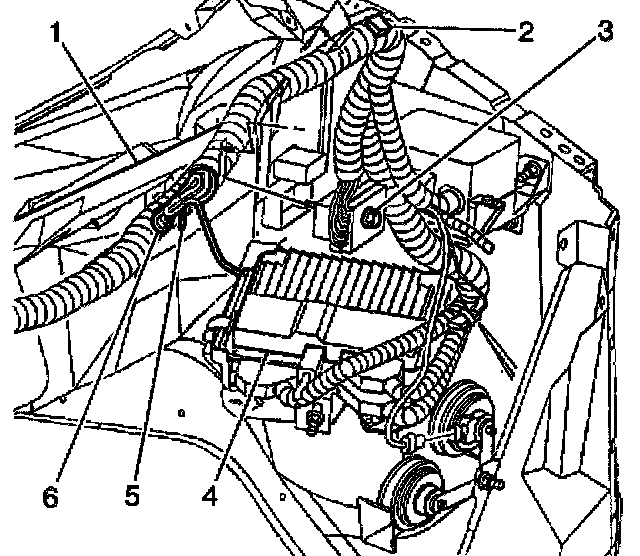 ^ Tighten the bolt retaining the engine coolant heater cord bracket to the engine to 12 Nm (106 inch lbs.).