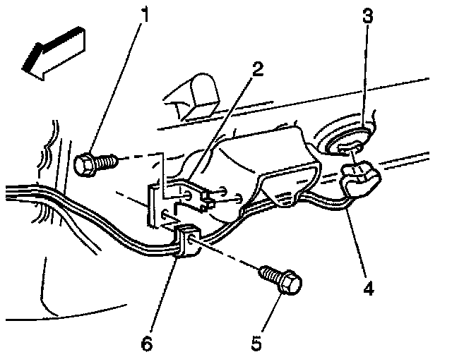 4. Install the bolt (5) retaining the cord clip (6) to the bracket (2).