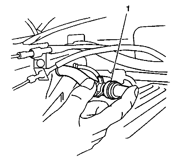3. Place your thumb over the end of the PCV valve (1) to check for vacuum. If there is no vacuum at the PCV valve, check for a plugged intake manifold port, PCV valve, or vacuum hose. Replace or repair as necessary.