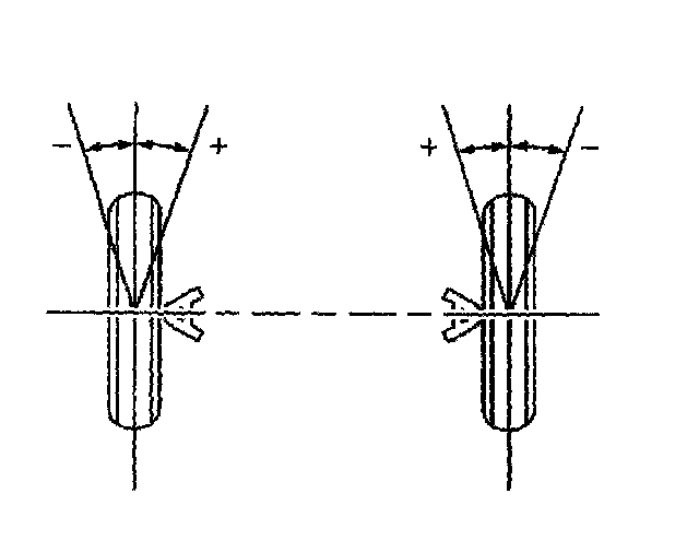 Toe is a measurement of how much the front and/or rear wheels are turned in or out from a straight-ahead position. When the wheels are turned in, toe is positive When the wheels are turned out, toe is negative The actual amount of toe is normally only a fraction of a degree. The purpose of toe is to ensure that the wheels roll parallel. Toe also serves to offset the small deflections of the wheel support system that occur when the vehicle is rolling forward. In other words, with the vehicle standing still and the wheels set with toe-in, the wheels tend to roll parallel on the road when the vehicle is moving. Improper toe adjustment will cause premature tire wear and cause steering instability.