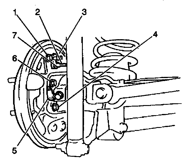 7. Remove the 4 nuts (4, 6) from the rear axle shaft bearing retainer studs.