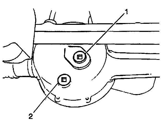 6. Install the front axle housing drain plug (2) into the front axle housing.