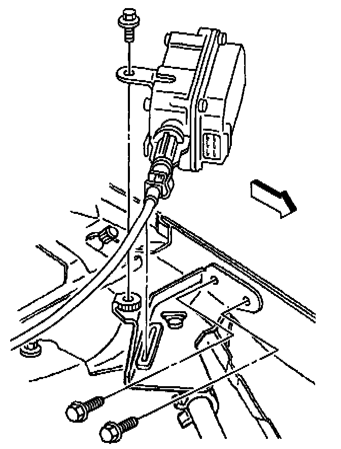 2. Remove the inner fender bolts from the cruise control module mounting bracket.