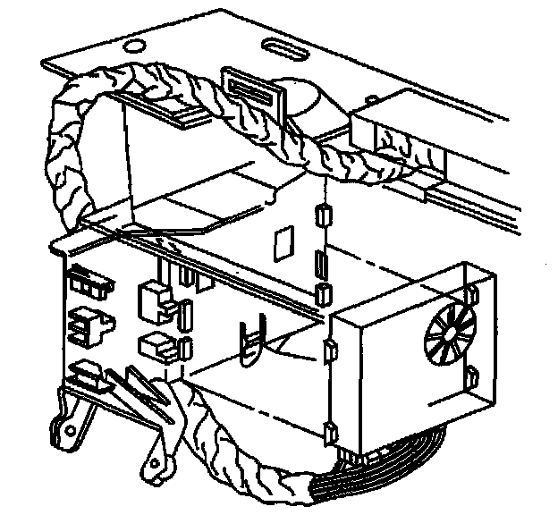 3. Push the release tab on the bottom of the bracket to release the body control module.