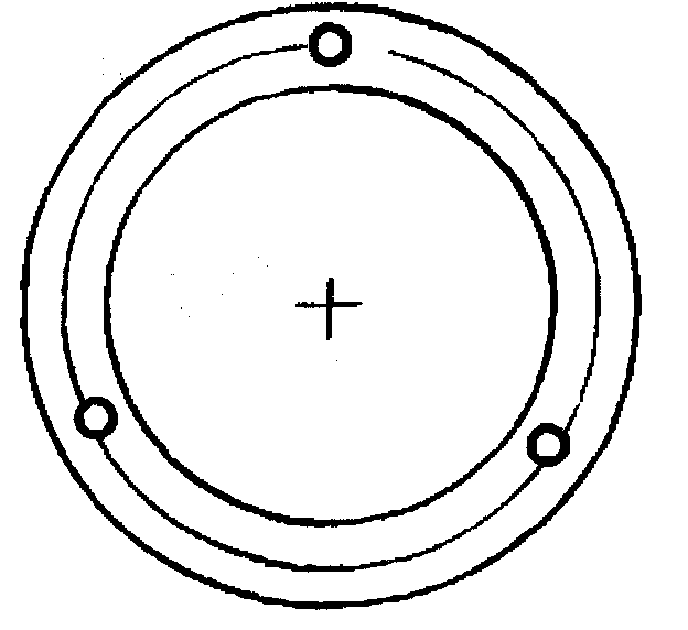 9. When the coil is fully seated on the front head, use a 1/8 inch diameter drift punch (2) in order to stake the front head at 3 places 120 degrees apart (3), in order to ensure that the clutch coil (1) remains in position.
