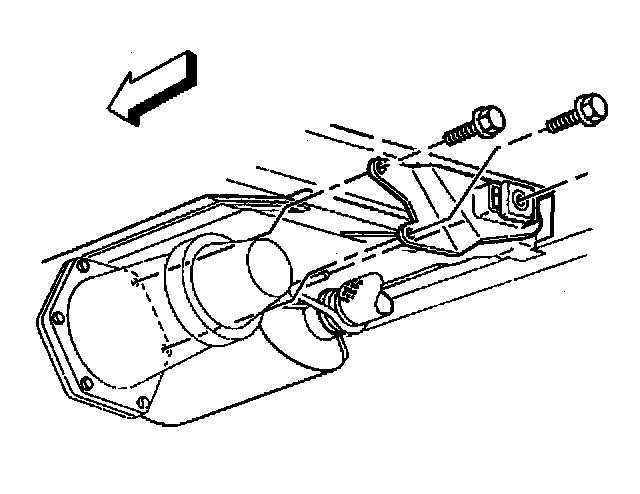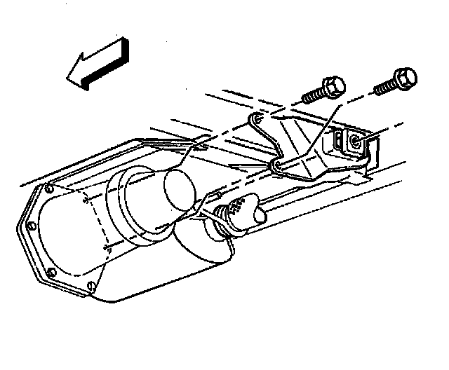 13. Remove the catalytic converter assembly from the vehicle by rotating the assembly over the rear of the transmission crossmember.