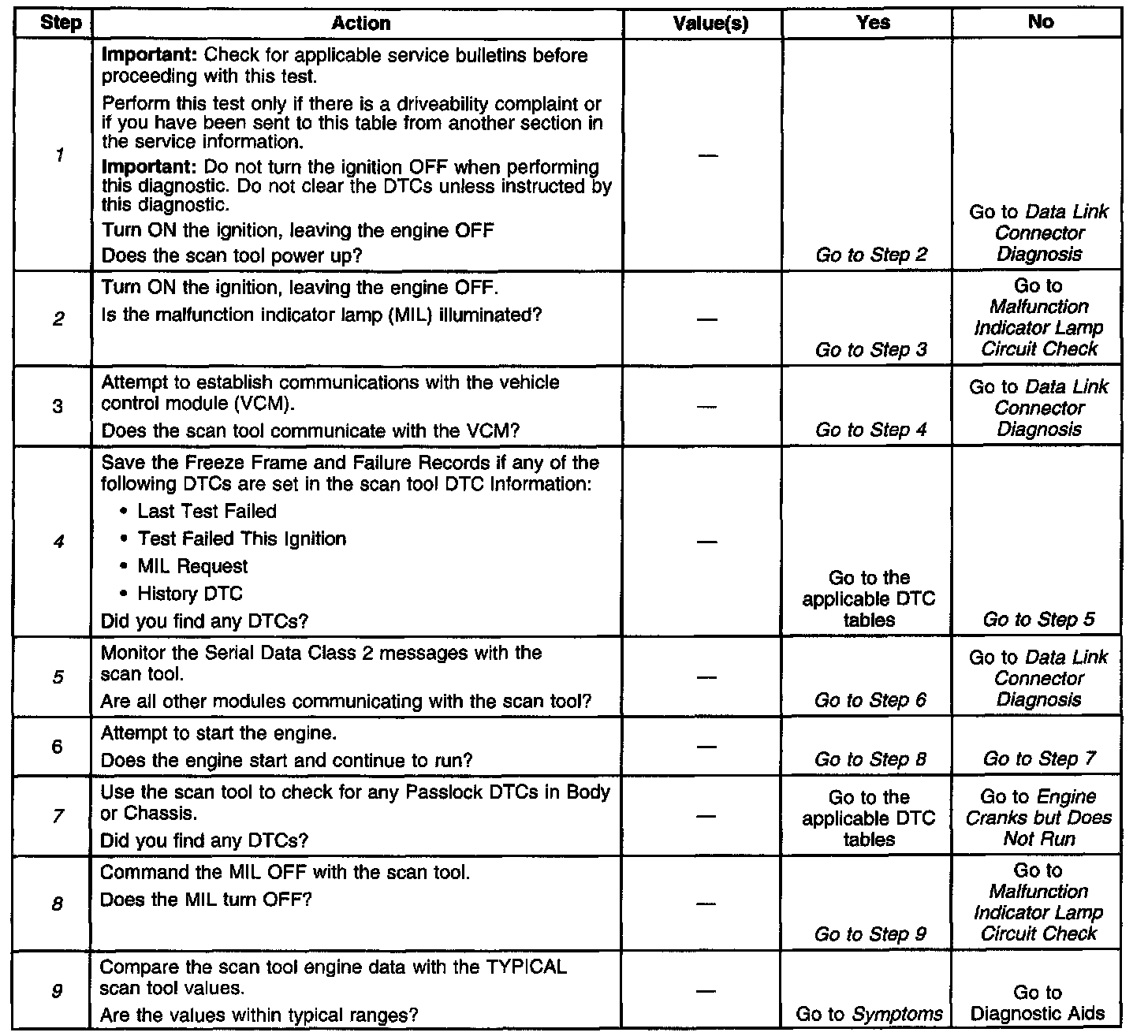 Understanding the table properly reduces the diagnostic time. Proper use of the table helps prevent the unnecessary replacement of good parts.