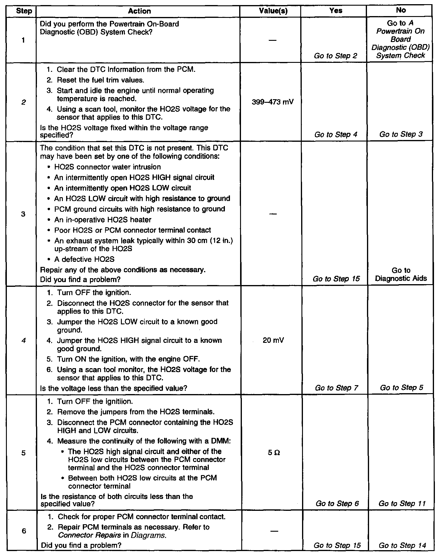 ^ An open or a short to voltage on either the HO2S signal or HO2S low circuits