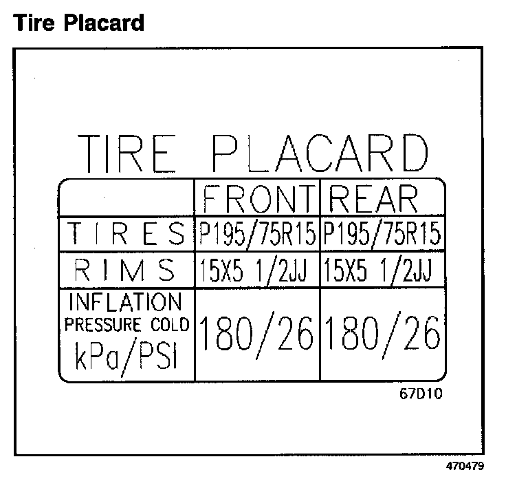 The tire placard is located on the left door lock pillar. Refer to the placard to obtain: