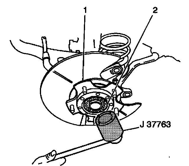 ^ Use the J37763 in order to install the wheel bearing lock nut (2).