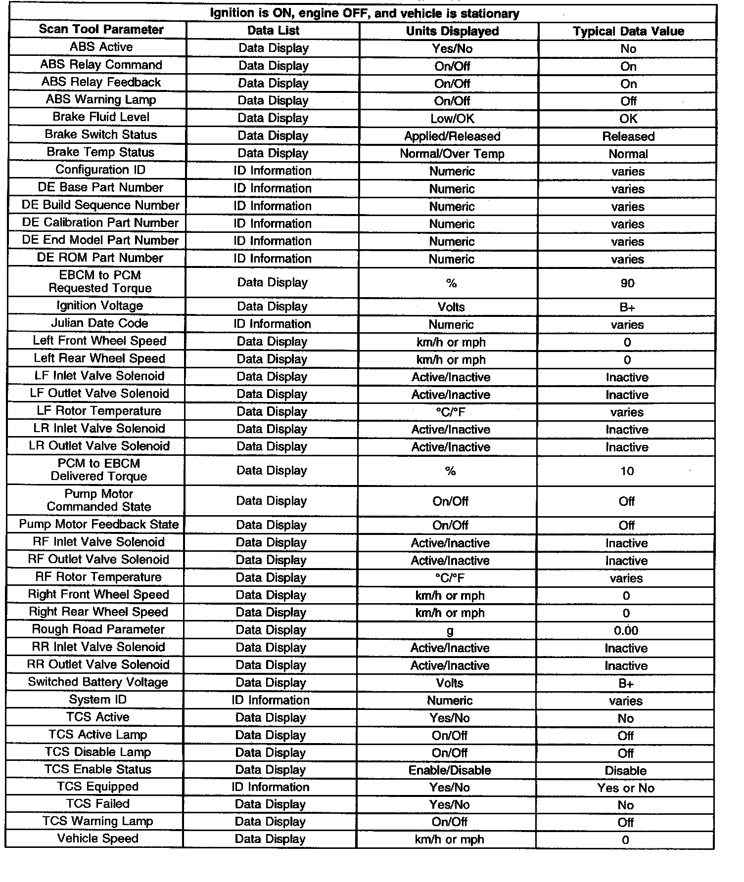 EBCM Scan Tool Data List