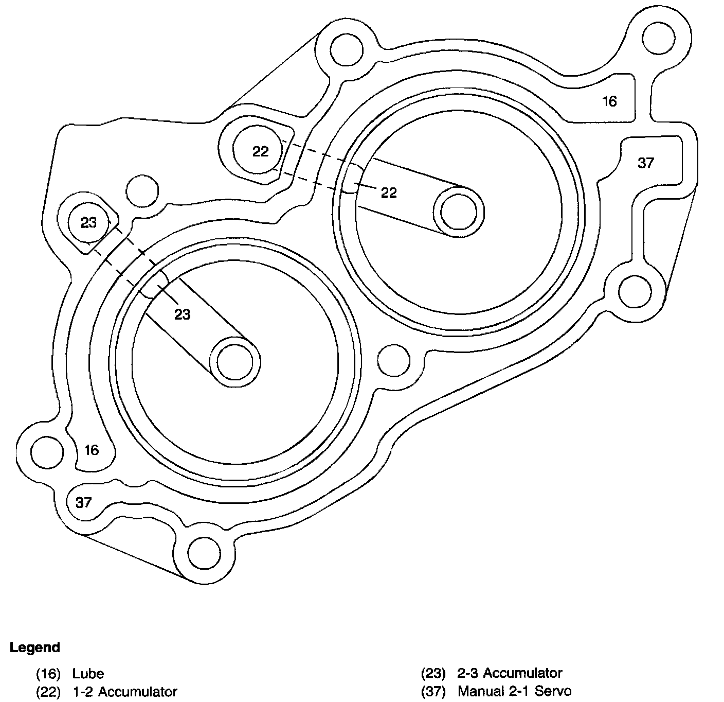 1-2 and 2-3 Accumulator Housing Fluid Passages