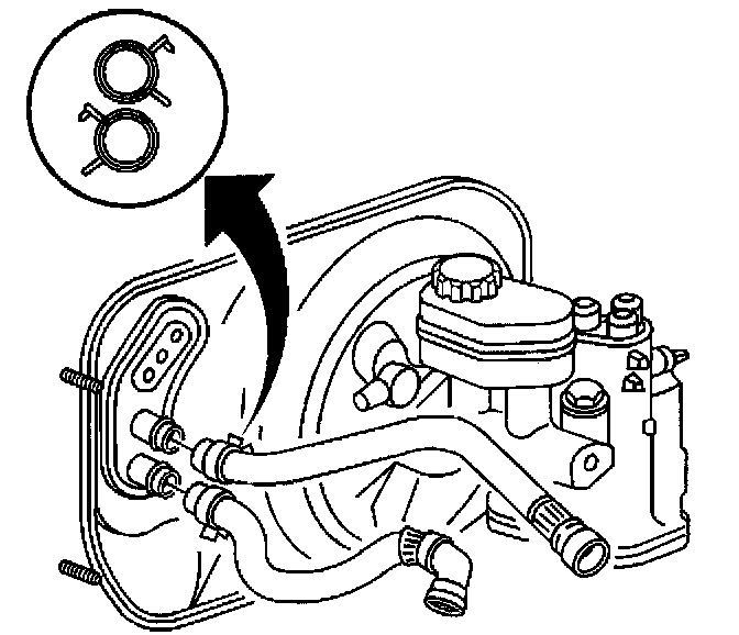 4. Disconnect both of the heater hoses from the heater core using the J 38185.