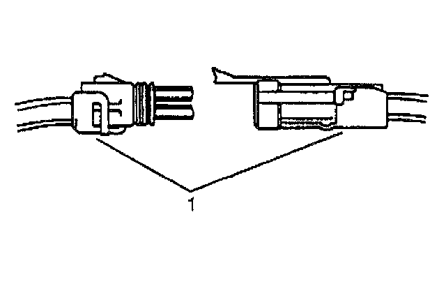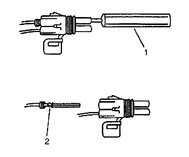 - Insert the Weather Pack(R) terminal removal tool into the front (mating end) of the connector cavity until it rests on the cavity shoulder (1).