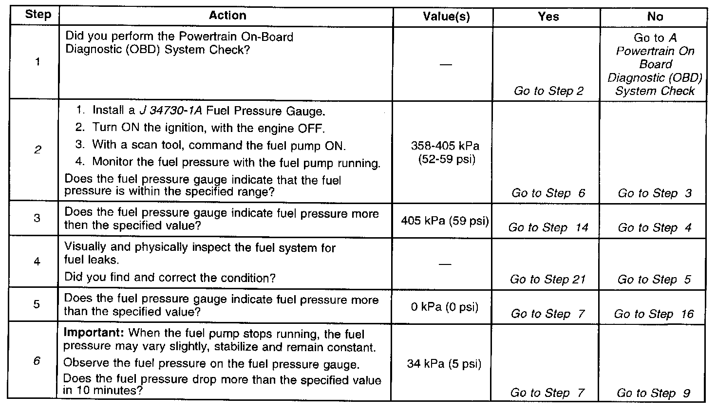 2. Tests the fuel systems ability to achieve a specific fuel pressure range. It may be necessary to cycle the fuel pump several times to achieve the pressure range.