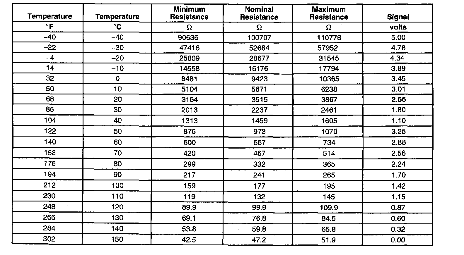 Transmission Fluid Temperature Sensor Specifications