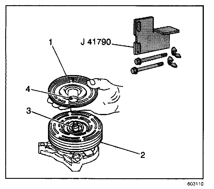 11. Remove the old clutch plate and hub assembly from the compressor.