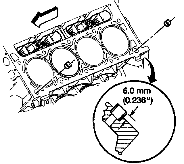 Notice: Clean all dirt, debris, and coolant from the engine block cylinder head bolt holes. Failure to remove all foreign material may result in damaged threads, improperly tightened fasteners or damage to components.