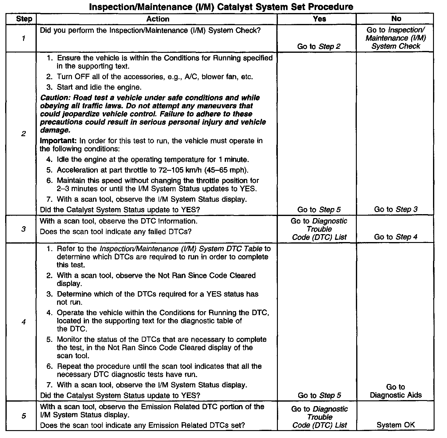 1. Make sure you perform the I/M System Check before performing this test. Failure to do so may result in difficulty updating the status to YES. Inspection/Maintenance (I/M) System Check