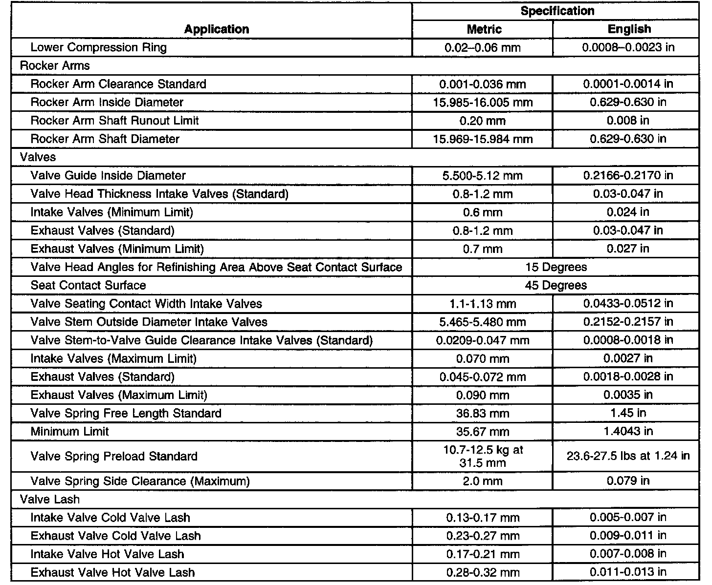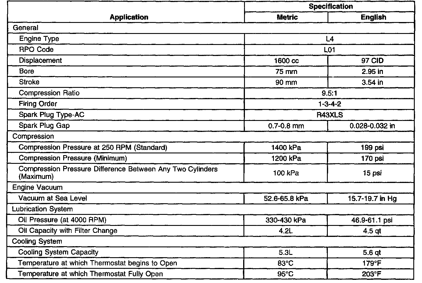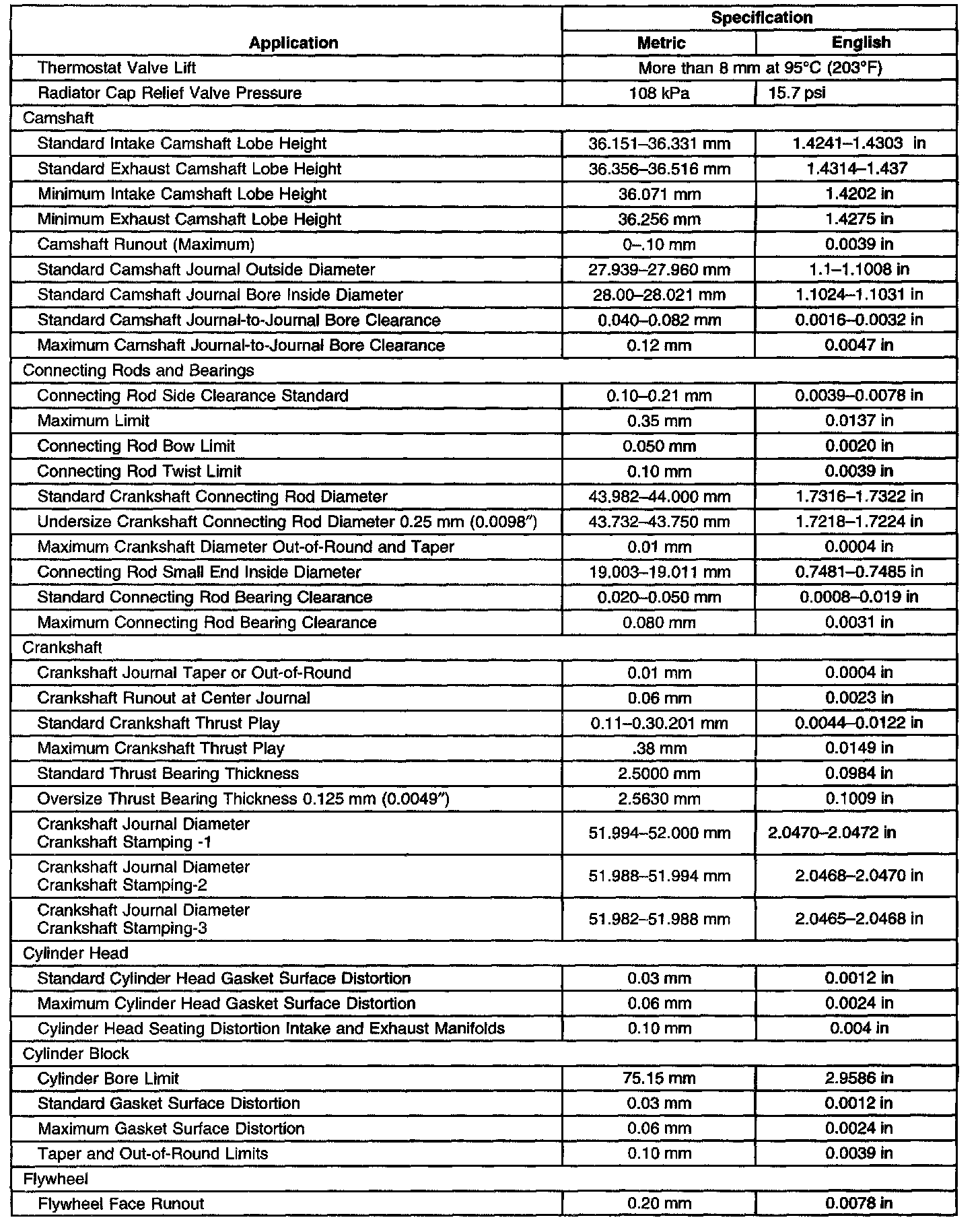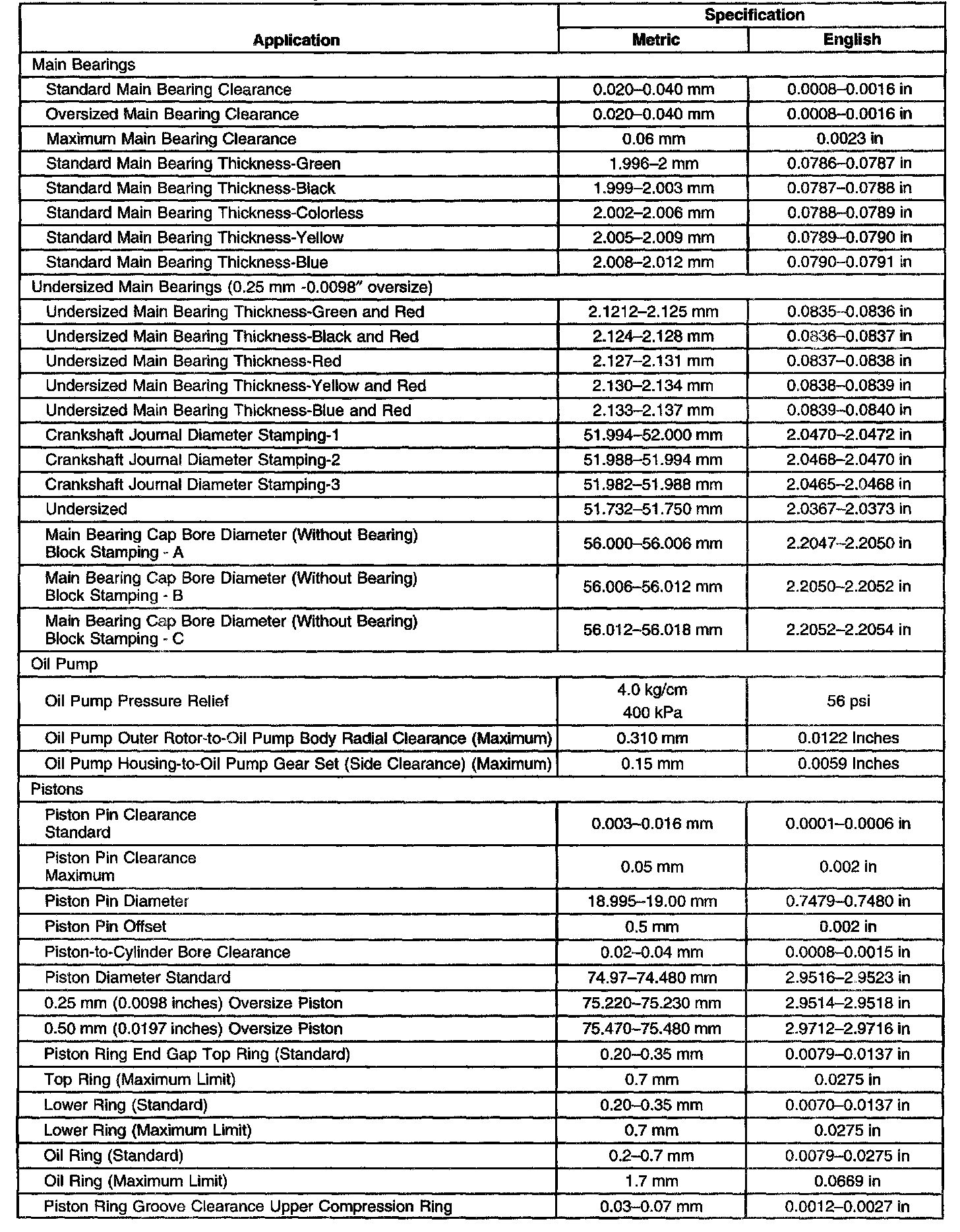 Engine Mechanical Specifications