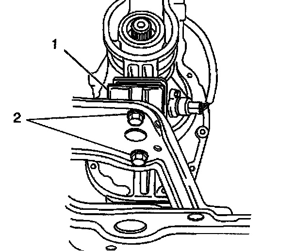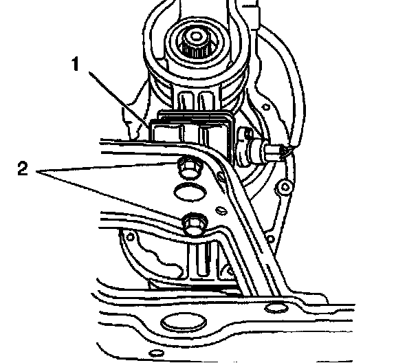 3. Install the 2 bolts (2) to the rear transmission mount.