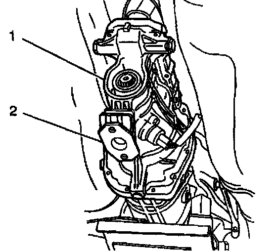 1. Install the rear transmission mount (2) to the extension case (1). Secure with 1 bolt.