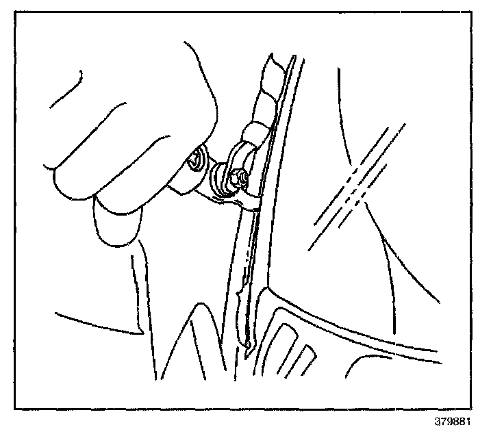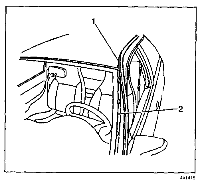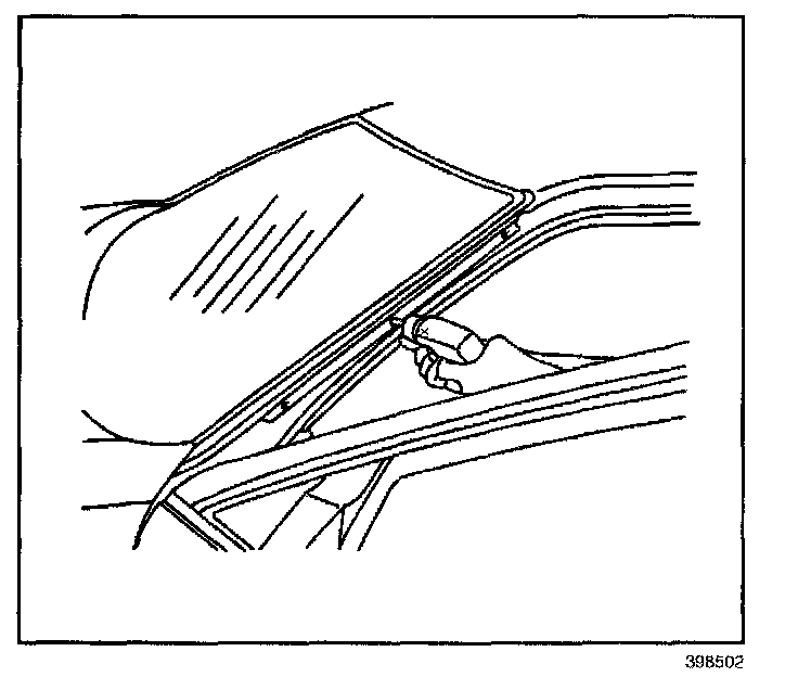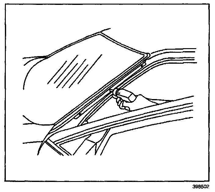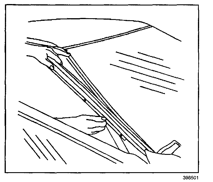 IMPORTANT: The upper window reveal molding fills the cavities between the body and window. If the reveal molding is stretched or damaged, replace the molding.