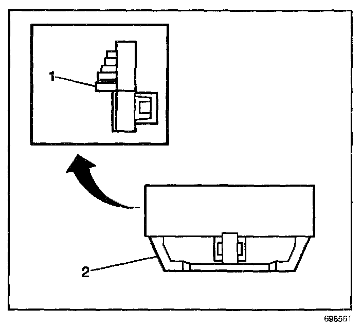 11. Remove the window lower supports (1) by using a flat-bladed tool, lightly prying upward in the middle until the support releases.