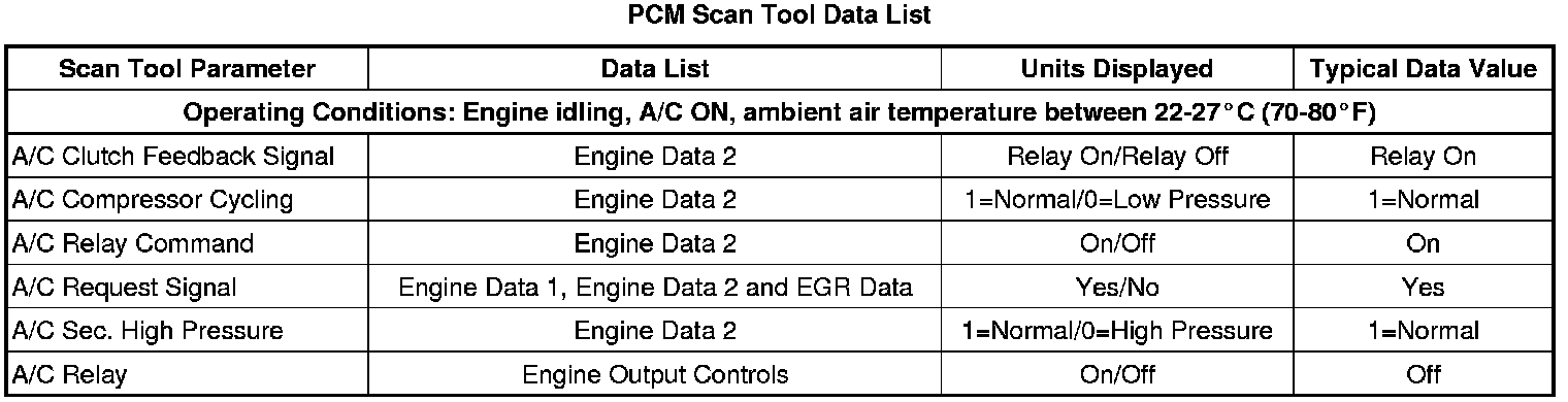 The scan tool data values were taken from a known good vehicle under the following conditions: