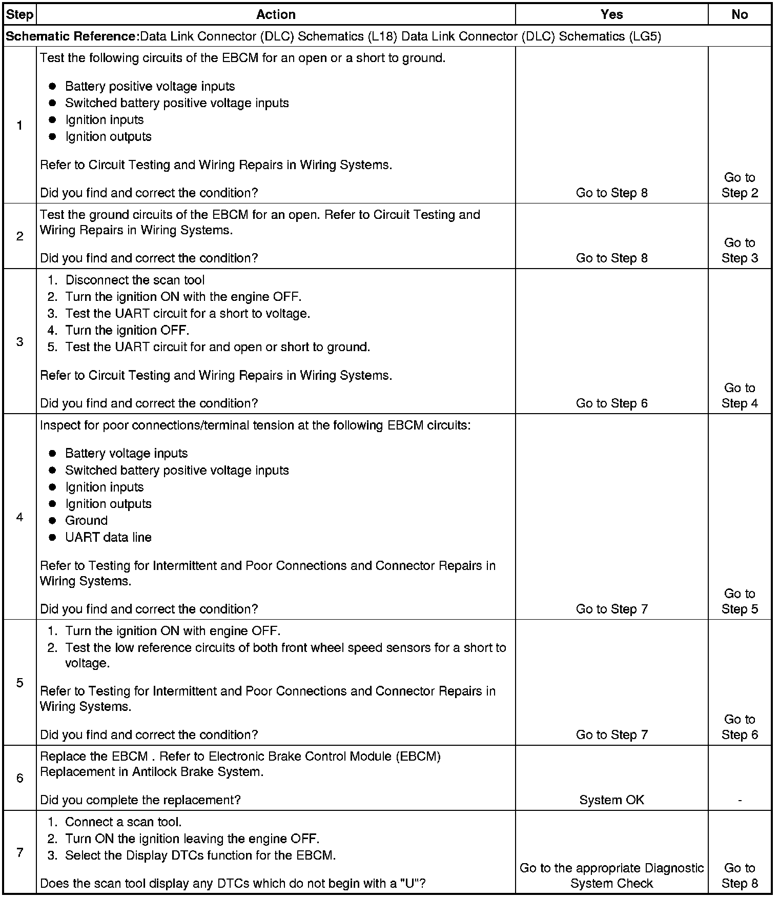 5. The EBCM which was not communicating may have detected a short to voltage on one or both of the front low reference circuits of the wheel speed sensors. This step checks for a short to voltage in these low reference circuits in the front wheel speed sensors.