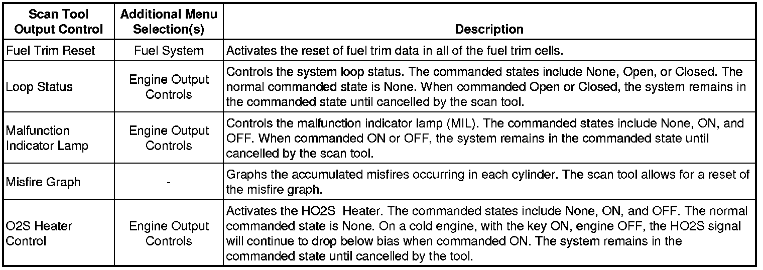 Scan Tool Output Controls - Engine Controls