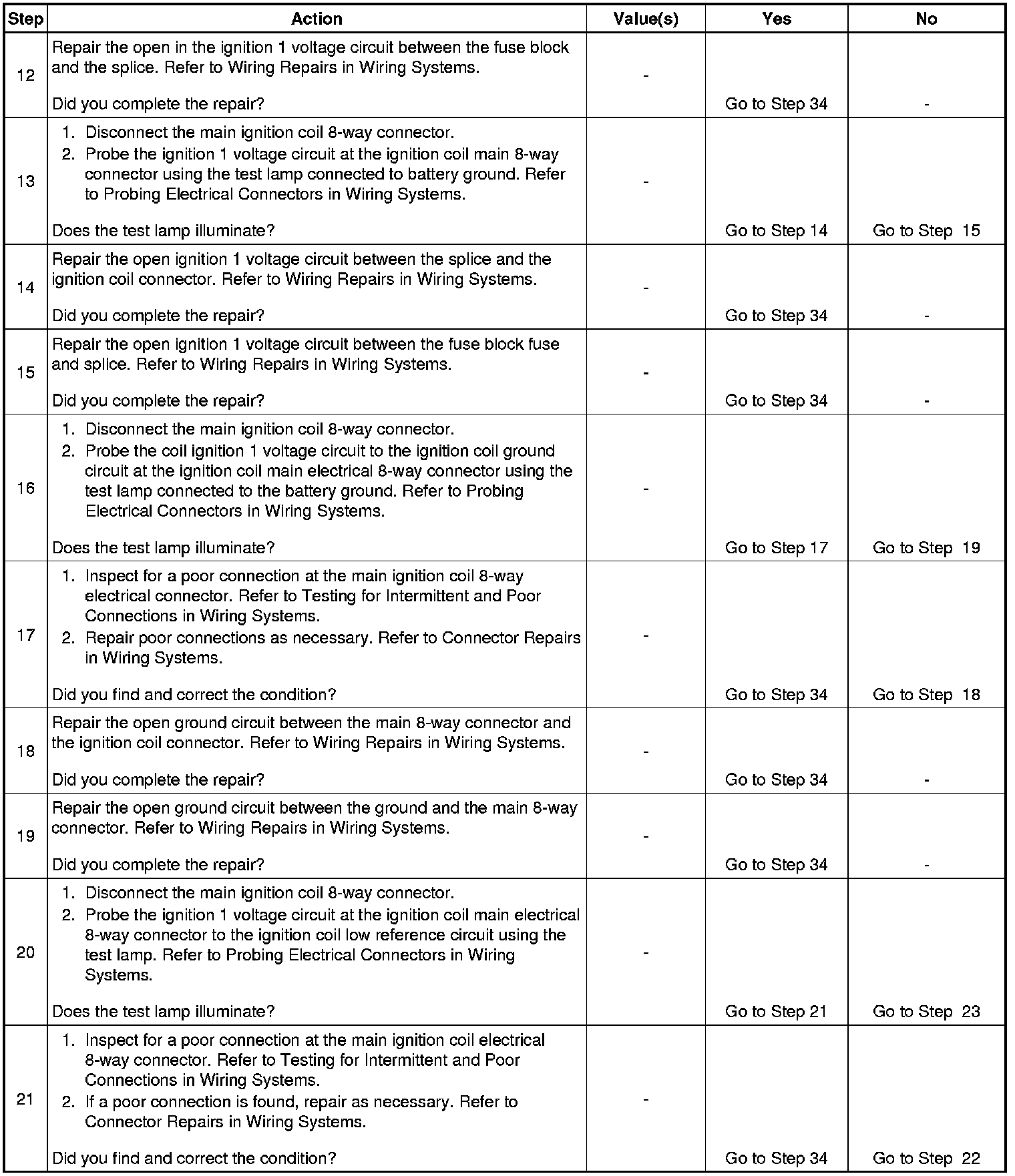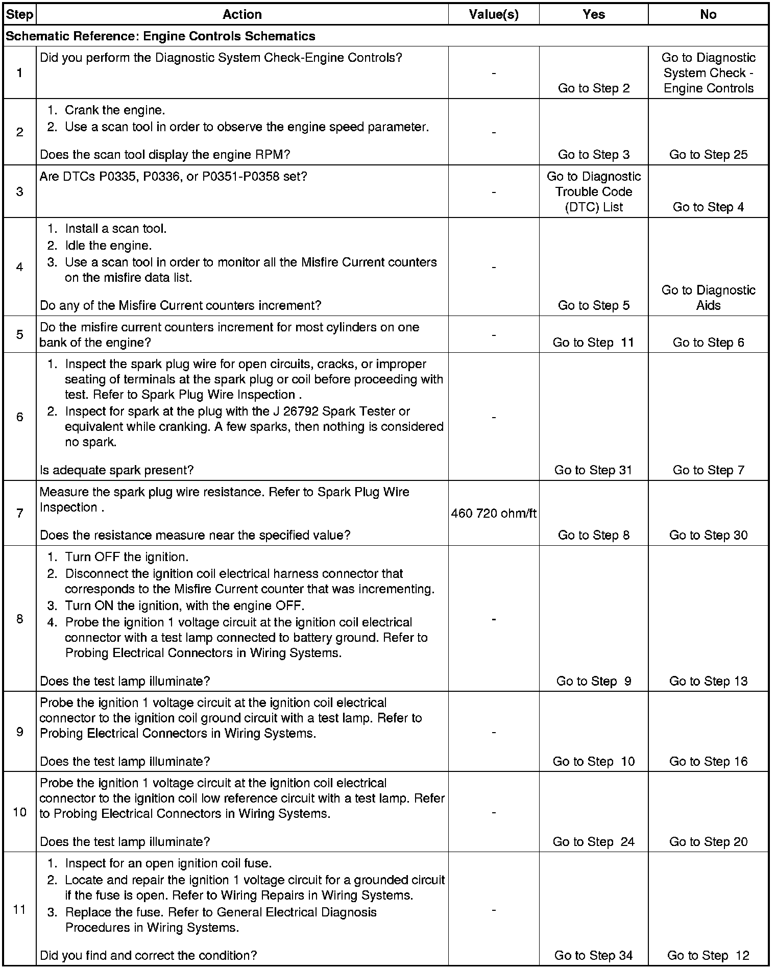 11. A good indication that the fuse is open is all of the misfire current counters are incrementing on one side of the engine. Inspect the ignition positive voltage circuit for a grounded circuit. If the fuse is open and the ignition coil circuits are OK, inspect the injector circuits for being grounded.