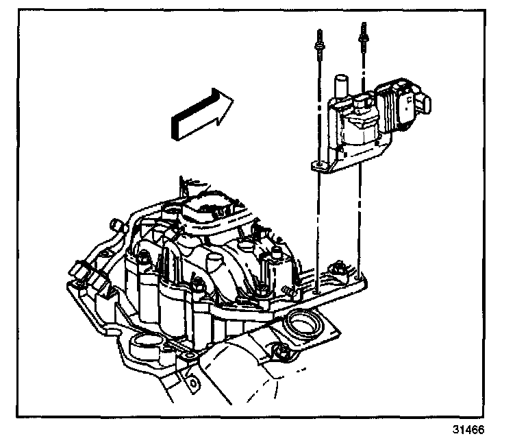 2. Install the ignition coil and the bracket to the intake manifold with studs.