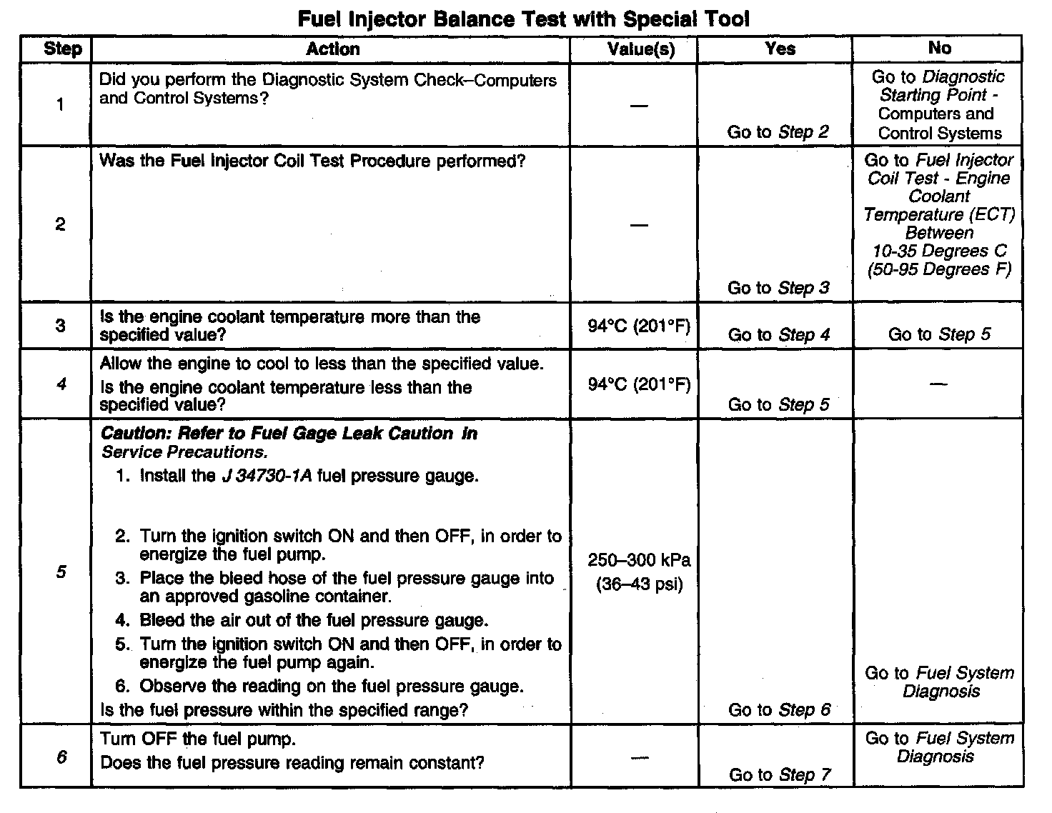 6. This step checks for a steady fuel pressure reading.
