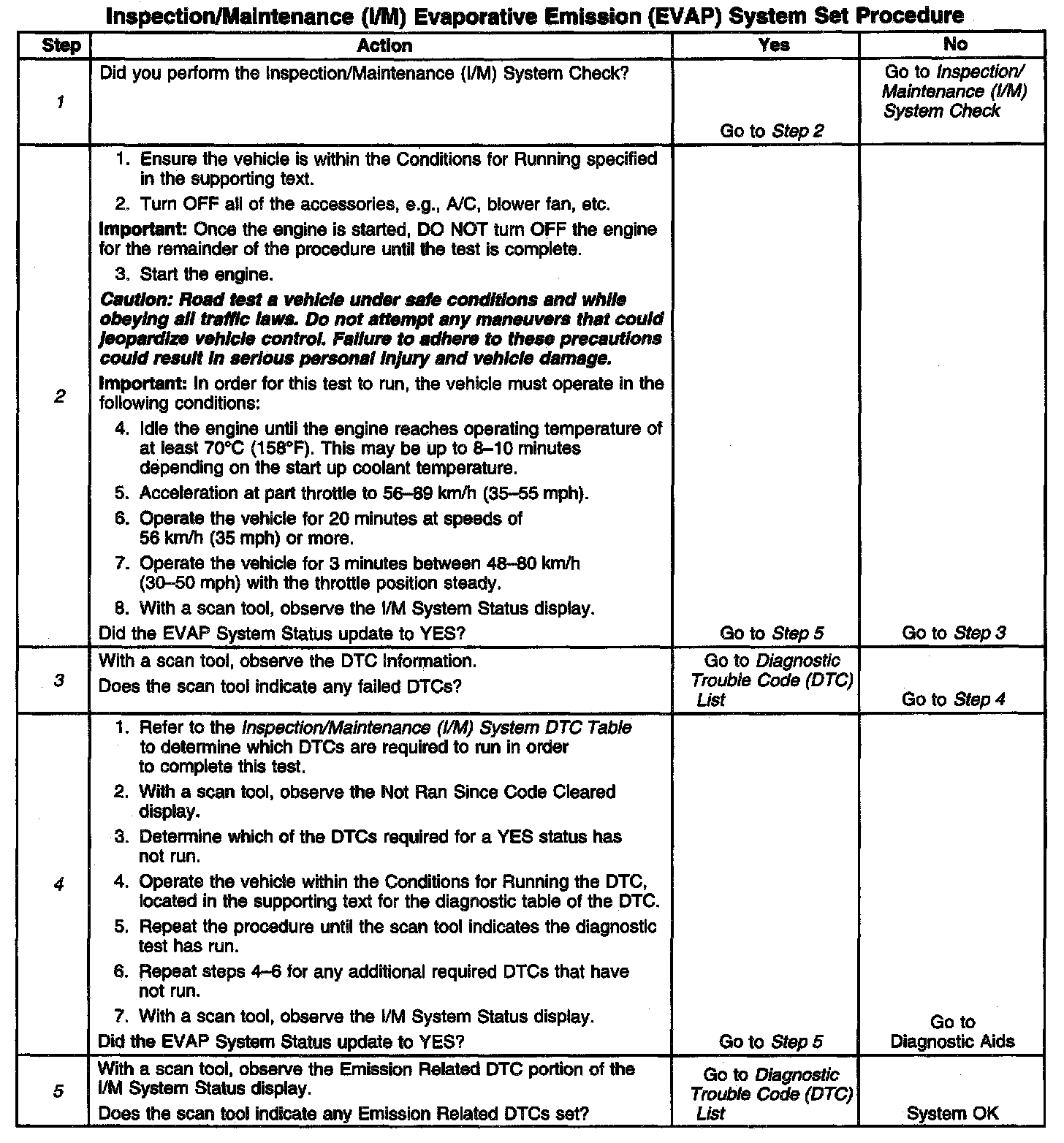 1. Make sure you perform the I/M System Check before performing this test. Failure to do so may result in difficulty updating the status to YES. Inspection/Maintenance (I/M) System Check