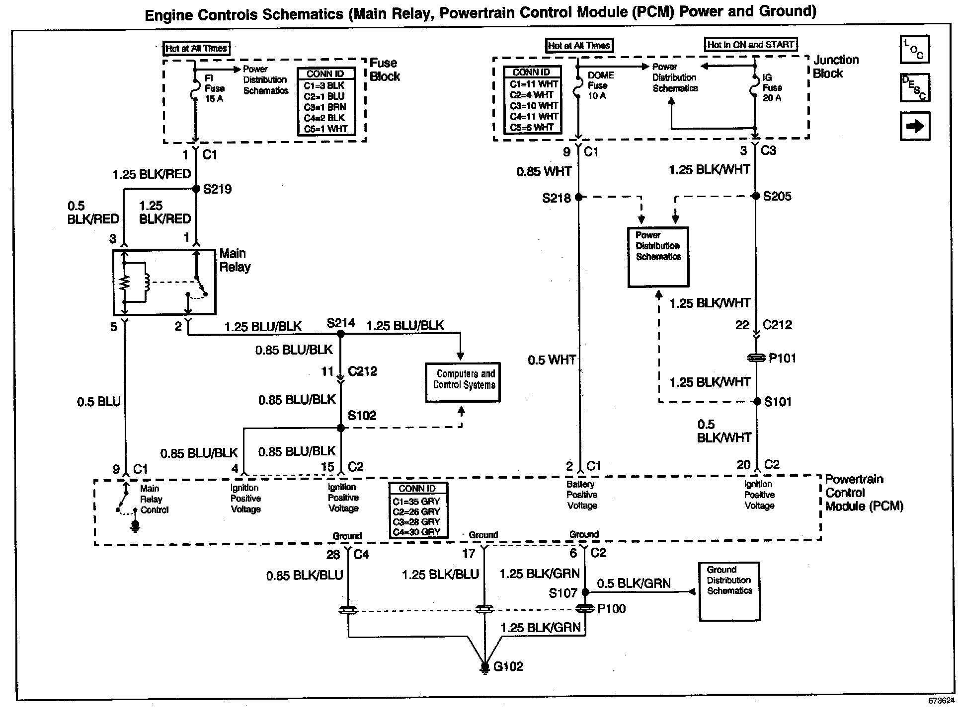 Engine Controls Schematics: Main Relay, Powertrain Control Module (PCM) Power And Ground: