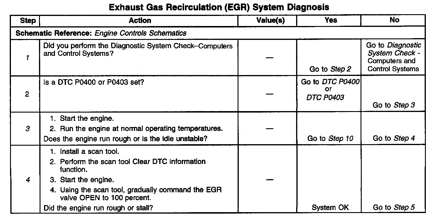 8. This step checks for a physically stuck EGR valve or plugged EGR passages.