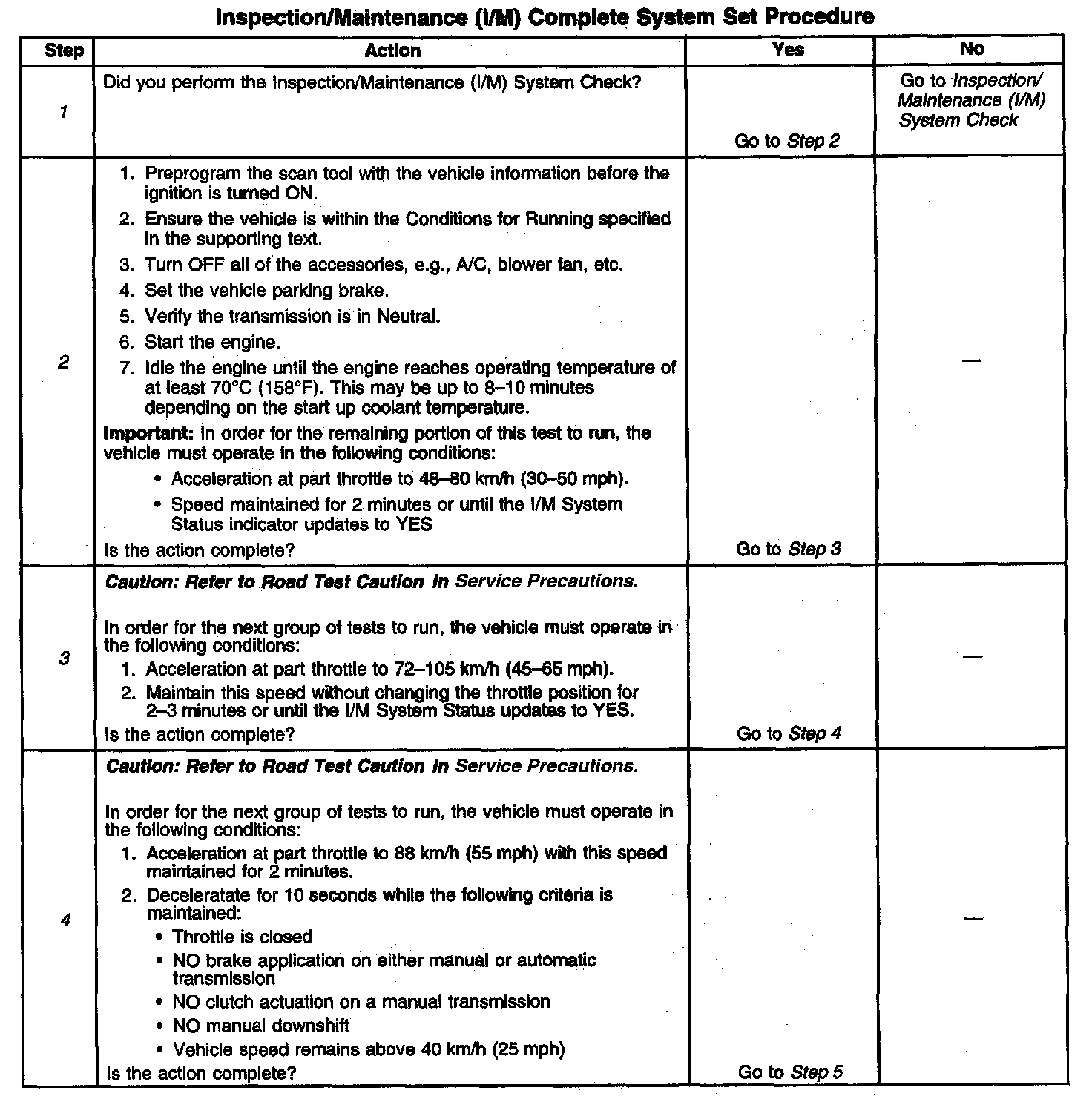 1. Make sure you perform the I/M System Check before performing this test. Failure to do so may result in difficulty updating the status to YES. Inspection/Maintenance (I/M) System Check
