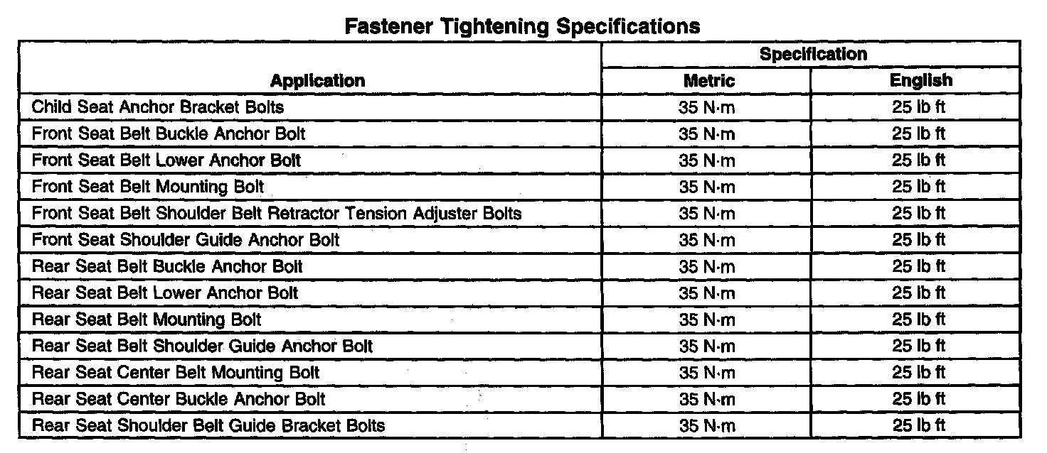 Fastener Tightening Specifications: