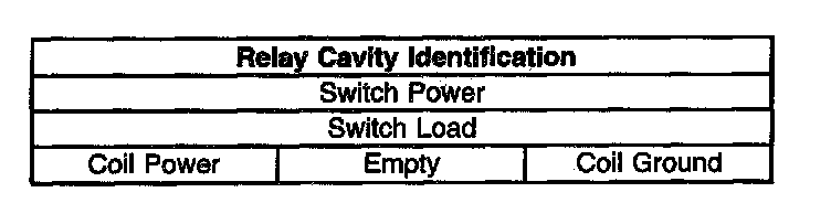 Use the relay cavity table in order to locate the correct cavities to probe during diagnosis. The table layout corresponds to the cavity layout of the relay block.