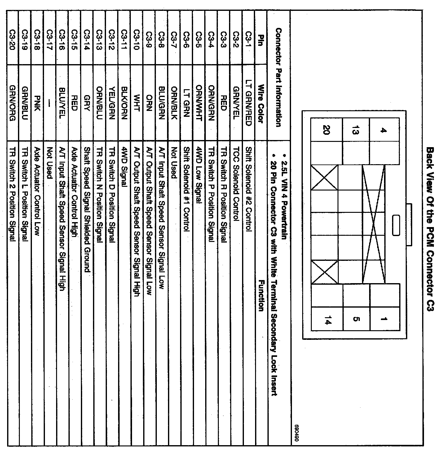 Back View Of The PCM Connector C3: