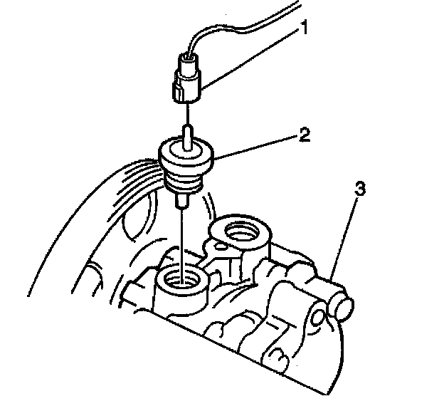 2. Apply GM P/N 12346240 or equivalent to the front cover at the points indicated (1).