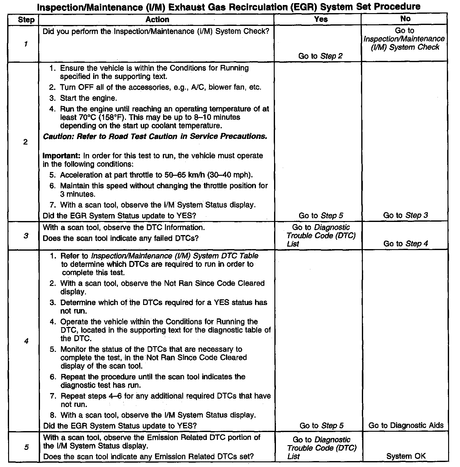 I/M EGR System Set Procedure