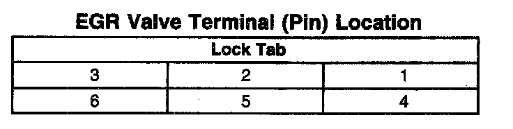 Use the table in order to locate the correct terminals to test during diagnosis. The table layout corresponds to the pin location of the EGR valve electrical terminals.