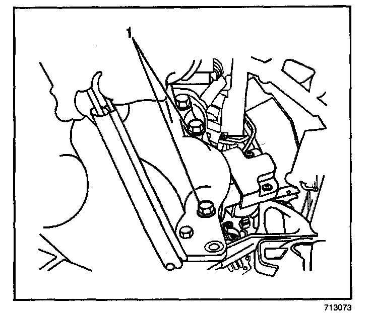 1. Install the starting motor through the front area of the engine compartment between the generator and the inner fender.