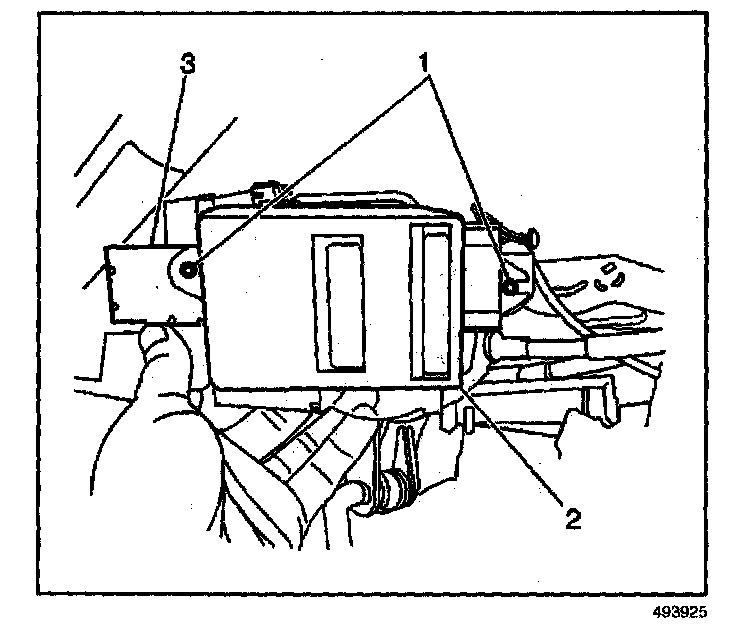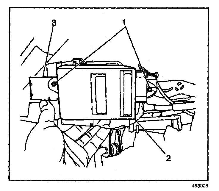 1. Remove the nut (1) which secures the remote control door lock receiver bracket (2).