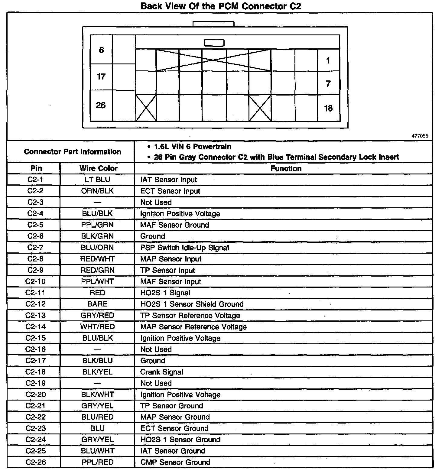 Back View Of The PCM Connector C2: